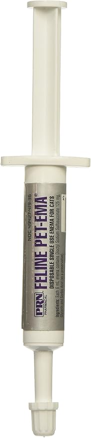 SubQ Fluids Other Syringes and Needles Oral Prescription Meds Oral Non-Prescription Meds and Supplements Capsule Making Supplies Injectable Meds Glucose Testing Enemas and Suppositories Blood Pressure Monitoring Miscellaneous Things. 53 Pet-Ema Feline 6 mL 3 Pack Disposable Enema for Rectal Use in Cats by PRN Pharmacal Inc. The Feline Pet-Ema contains dioctl sodium sulfosuccinate in glycerine to stimulate intestinal mucosa and soften hard fecal matter.